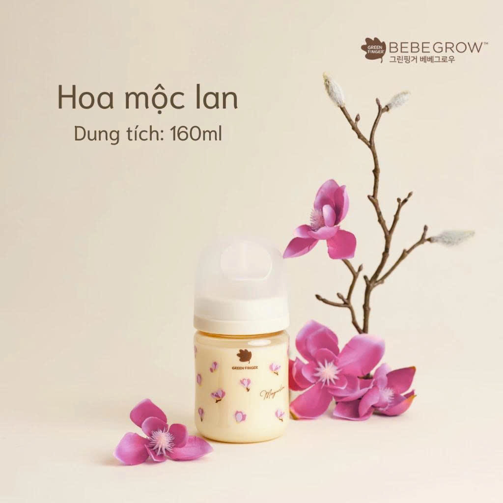 Set bình sữa BeBeGrow Green Finger 160ml - Hoa mộc lan tím