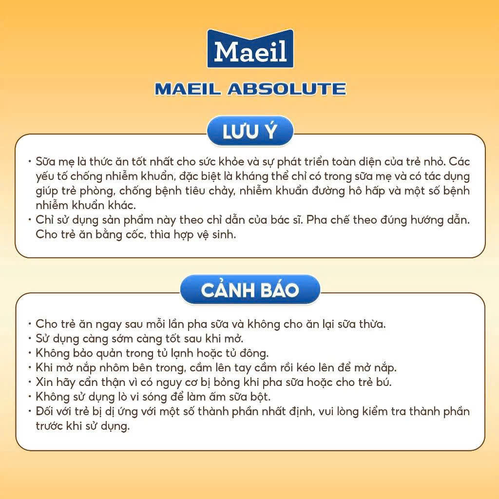 - Tên sản phẩm: Sản phẩm dinh dưỡng công thức Maeil Absolute giúp hỗ trợ tiêu hóa, tăng cường hệ miễn dịch, phát triển não bộ cho trẻ
