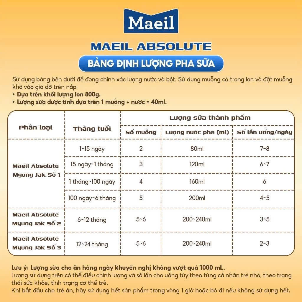 ĐẶC TRƯNG CỦA SỮA CÔNG THỨC MAEIL ABSOLUTE